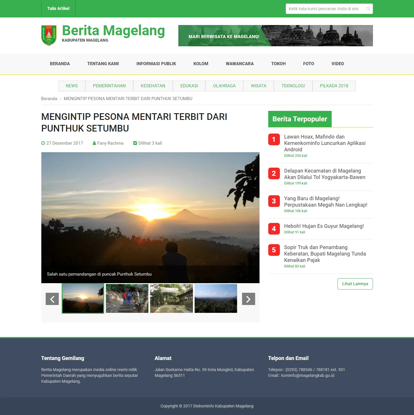 Diskominfo Kab. Magelang tak perlu khawatir website ini akan bermasalah atau bahkan tidak dilirik oleh pengunjung. Aspek – aspek krusial sebuah website portal berita sudah dieksekusi dengan brilian oleh tim dari Tonjoo.