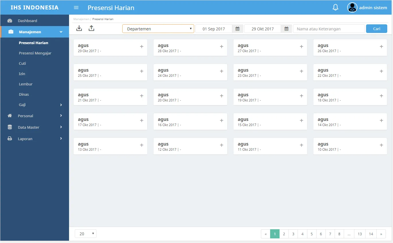 Along with the functional matters, we also design IHS’s HRD information system with a simple and attractive interface. Simple yet modern impression will ease the user when accessing this application. In the long run, an employee information system is a solution to manage your company’s valuable assets.