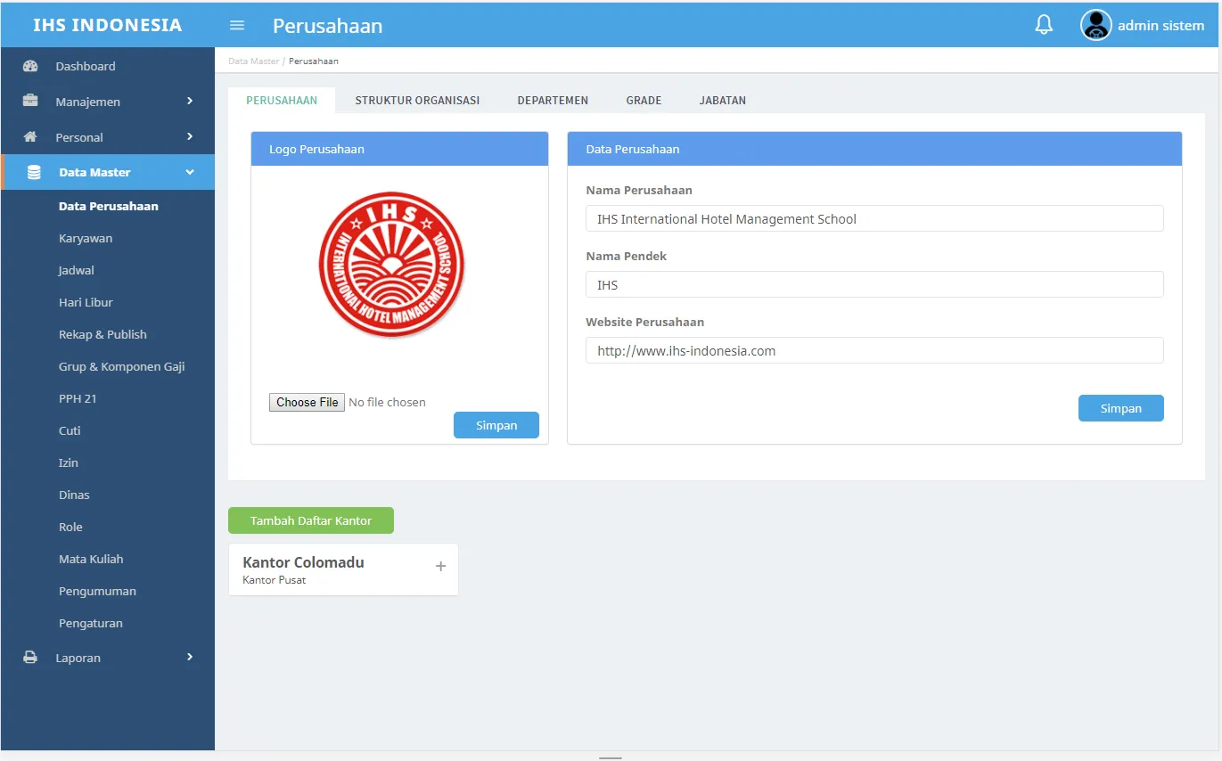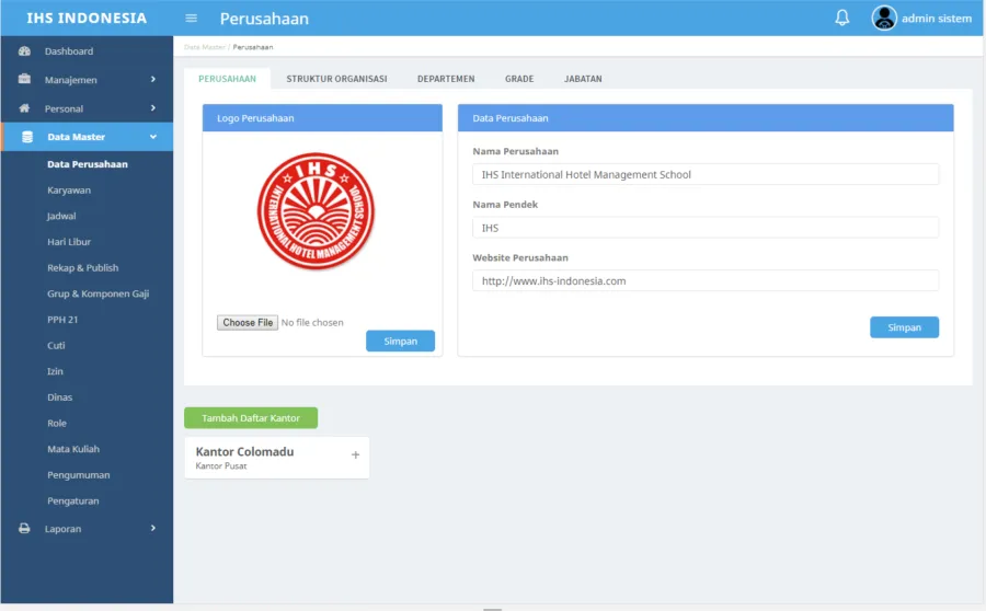 International Hotel Management School (IHS) located in Solo is also interested to apply HRD information system to manage its employee and lecturer data. Inspired by Tonjoo’s expertise in building similar applications, IHS picks us as a partner without a second thought. Tonjoo itself already has a similar human resource system information called Amanah. Amanah was then re-modified into a web-based application to fit in IHS needs.