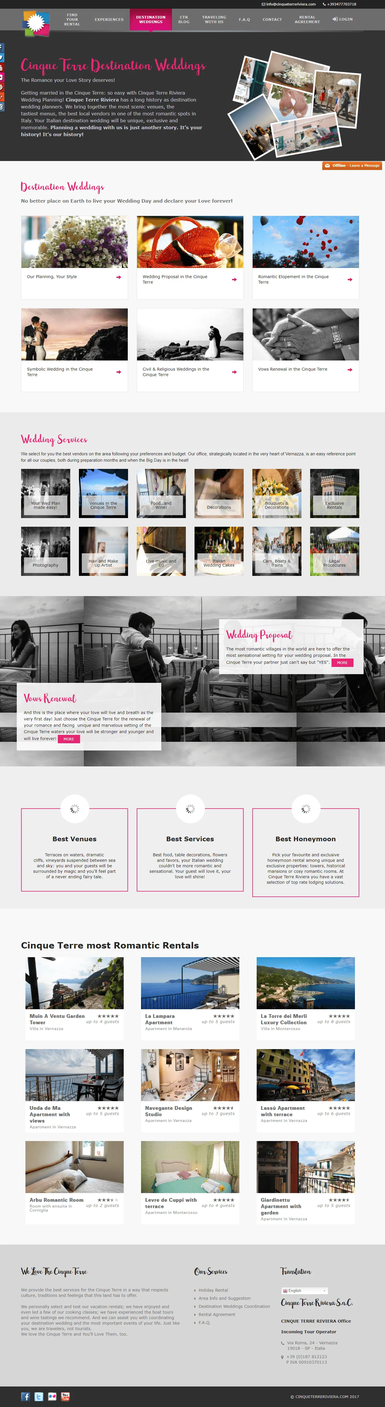 Cinqueterre Riviera là một trang web du lịch dựa trên nền tảng WordPress chuyên cung cấp thông tin về cáckhu du lịch nổi tiếng nhất ở Ý tới khách du lịch tiềm năng , đặc biệt là khách du lịch tại Cinqueterre. Cinqueterre Riviera là một trong nhiều doanh nghiệp vừa và nhỏ đang chuyển hướng kinh doanh sang thị trường số để tiếp cận tệp khách hàng rộng lớn hơn. Trước đây, Cinqueterre Riviera đã gặt hái thành công nhất định trong lĩnh vực quản lý biệt thự tại Ý.